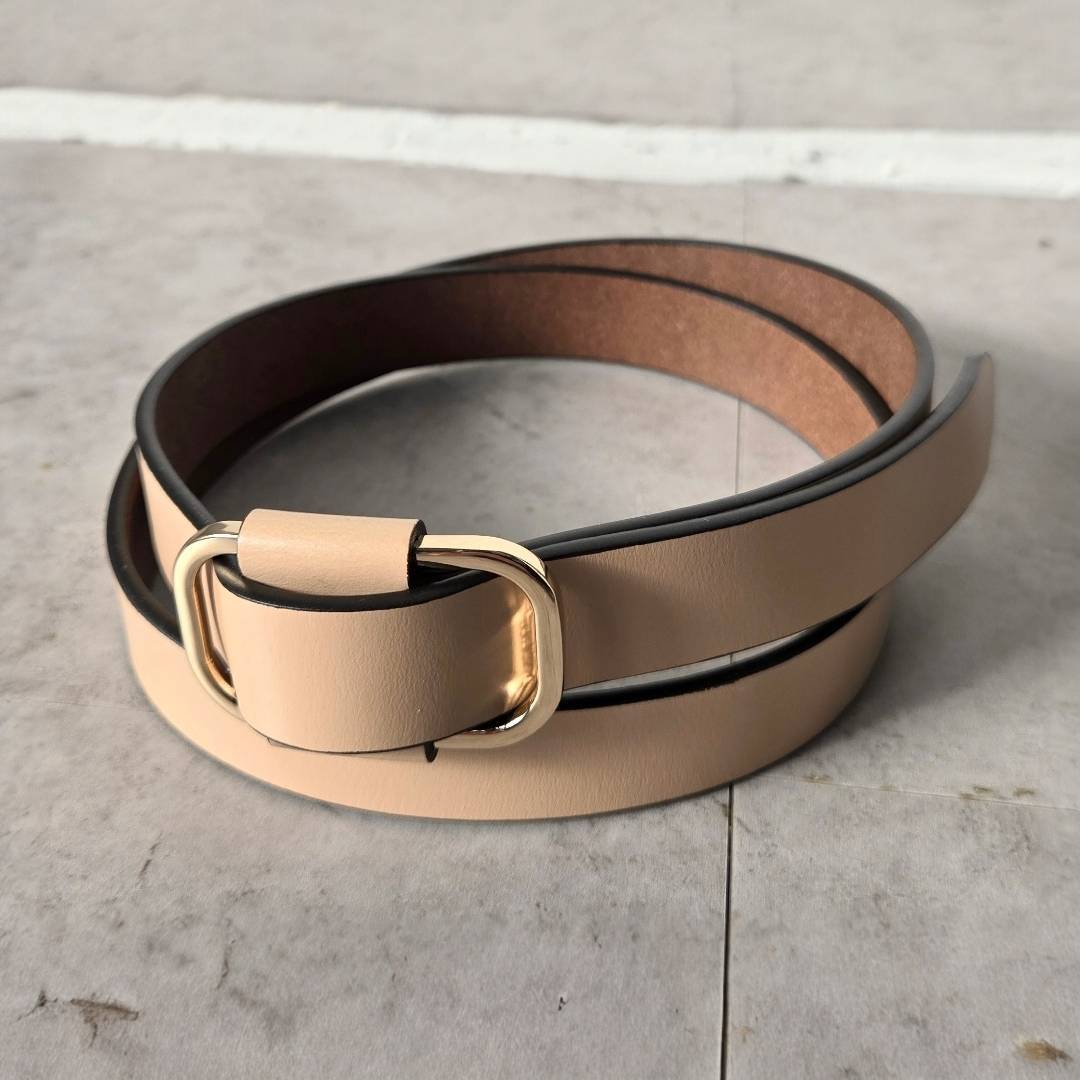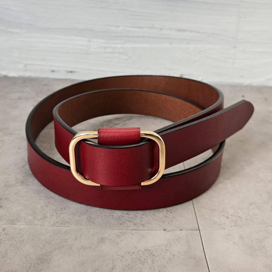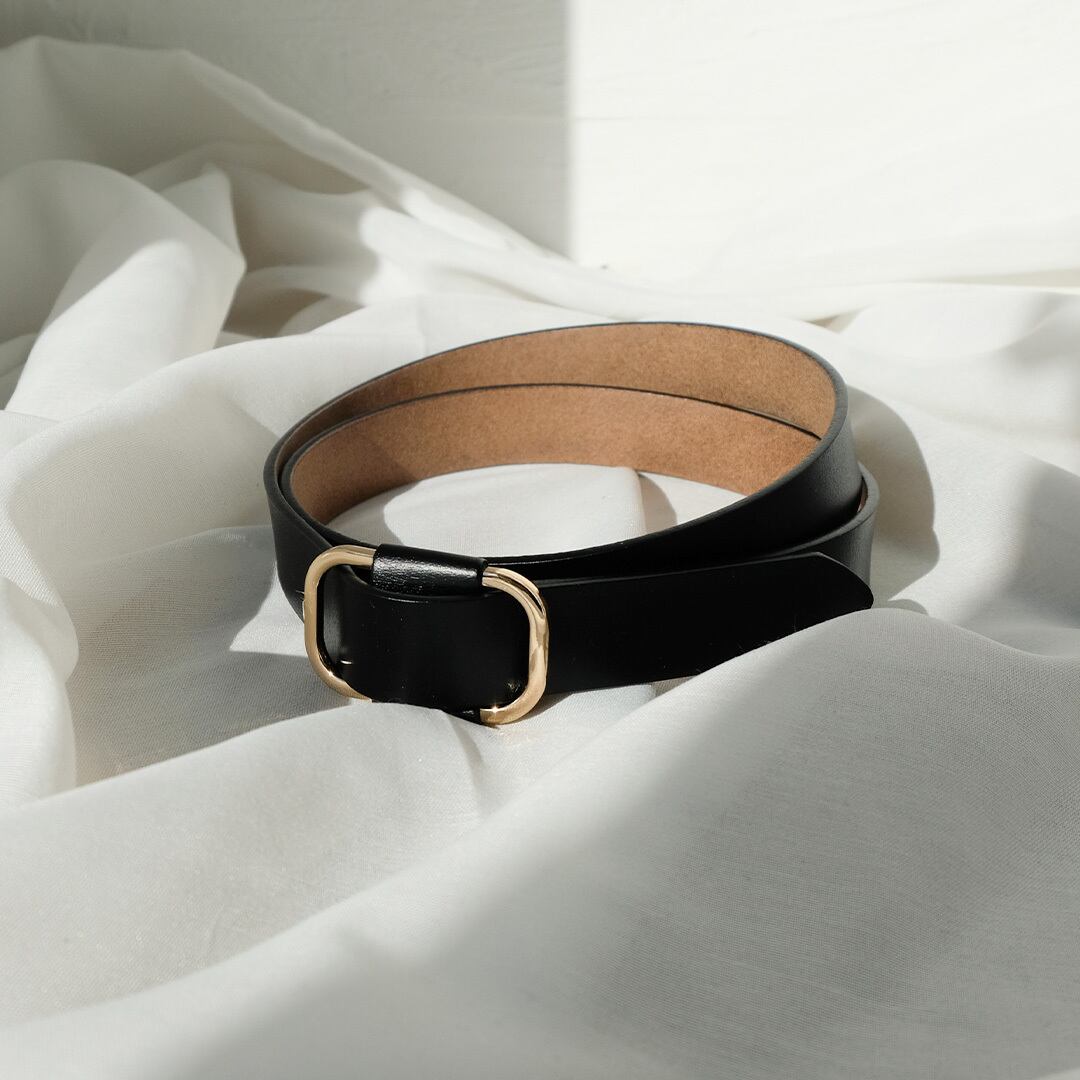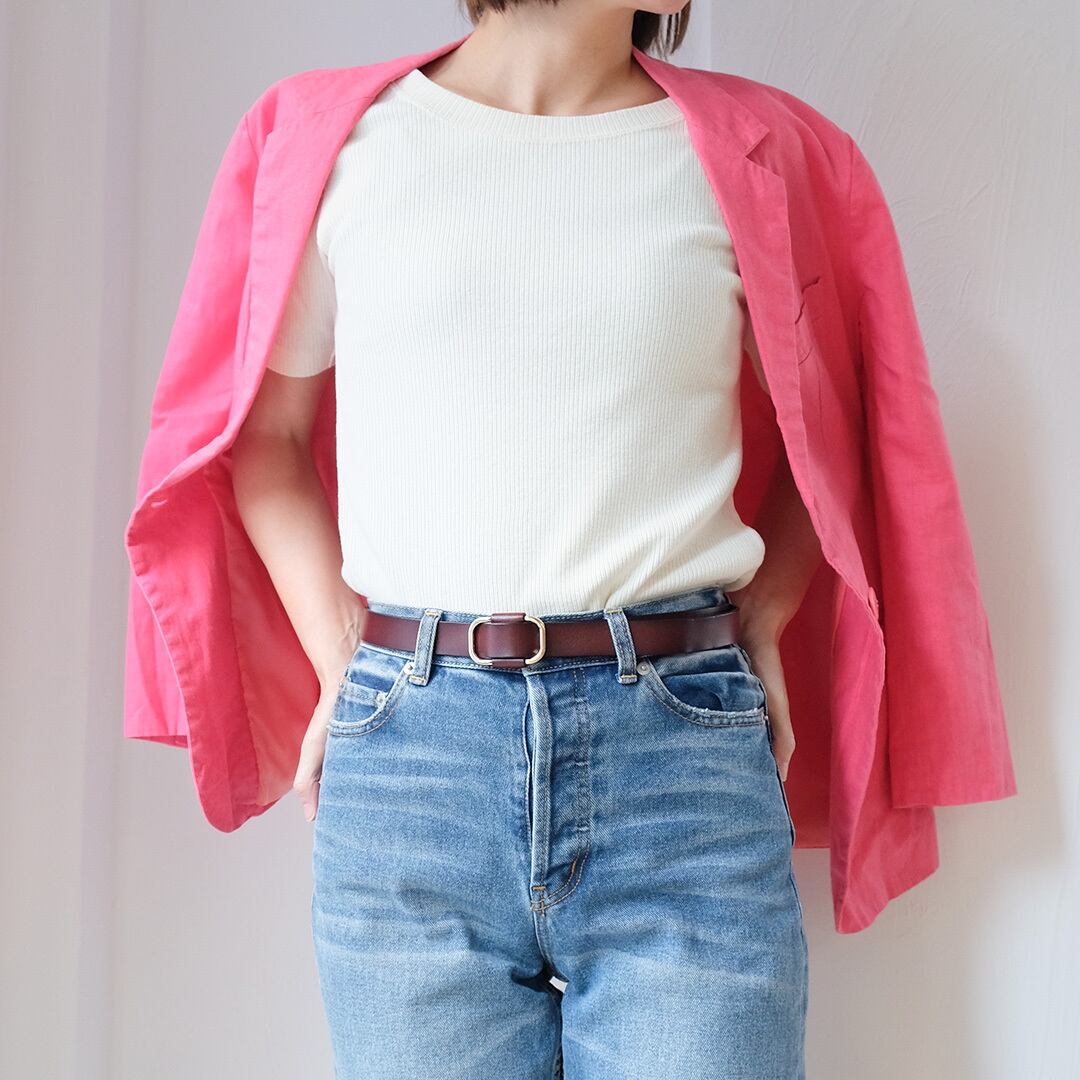 シンプルなデザインの牛革ベルト。どんなコーディネートにも合わせやすく、1つ持っていれば万能のアイテム。また、サイズの心配がないピンレスタイプで長さにも余裕があり、メンズ・レディース、妊婦(マタニティ)の方ともにお使いいただけます。プレゼントにも最適です。